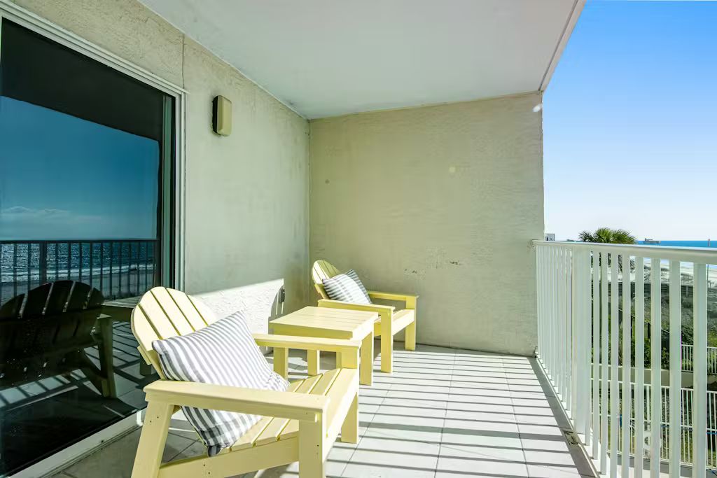 Clearwater 2C Spacious balcony with views of the white sands and beach.