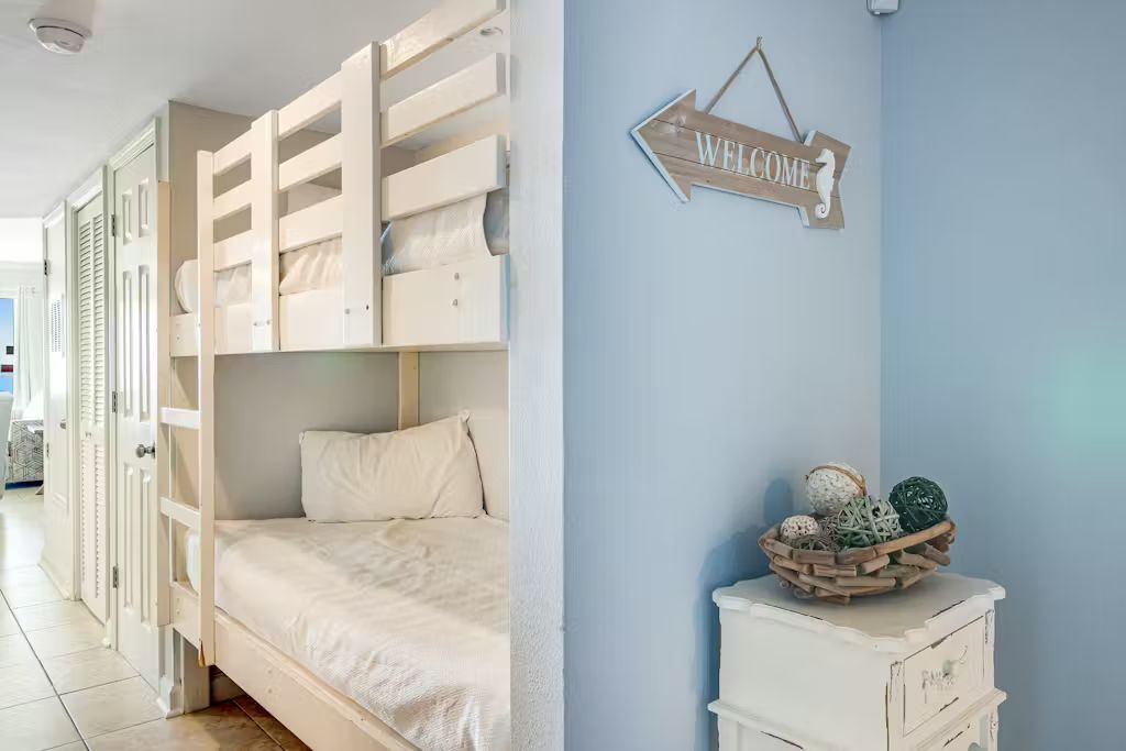 Clearwater 2C Twin-over-twin bunk bed in the hallway, perfect for the little ones.