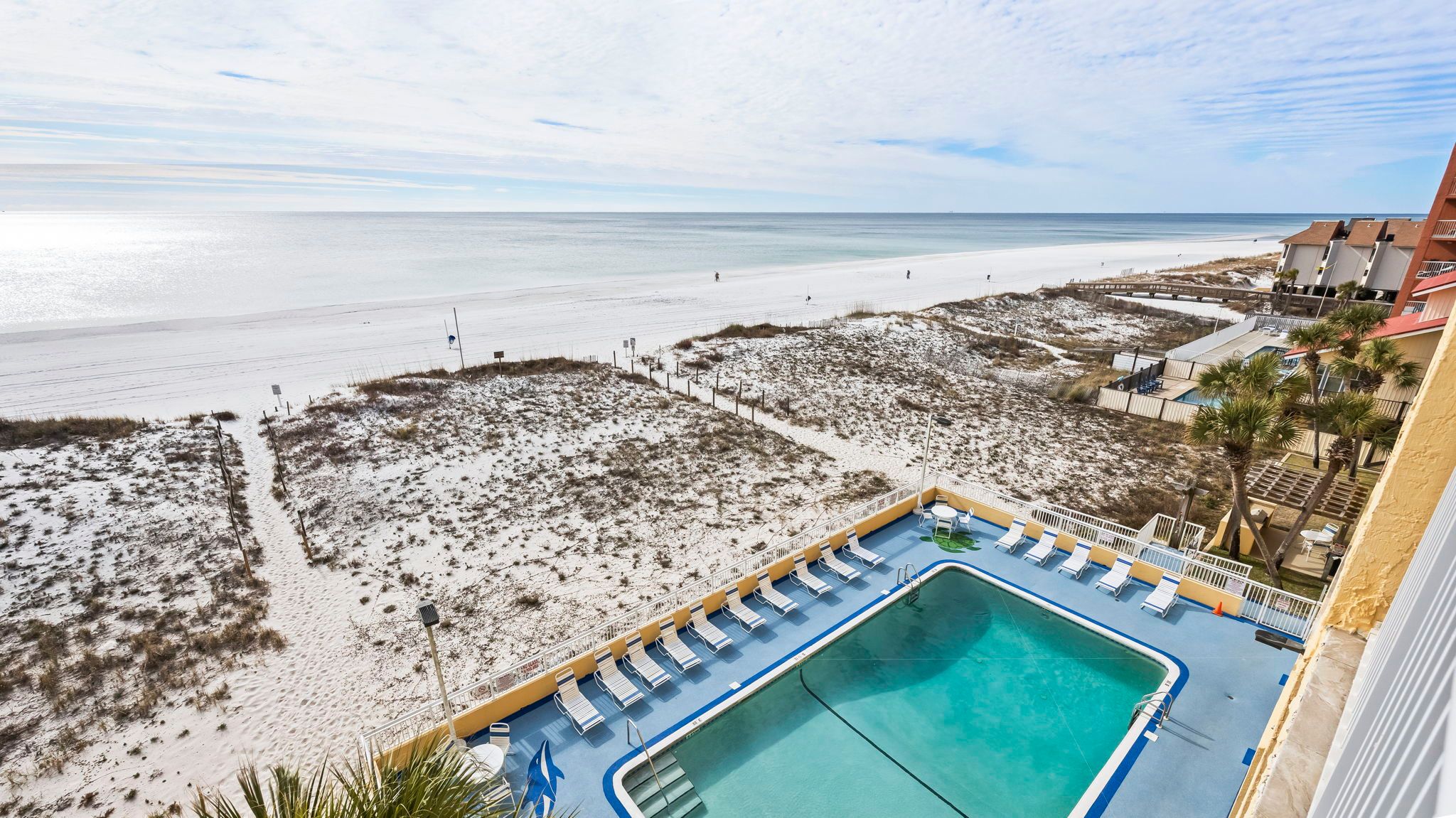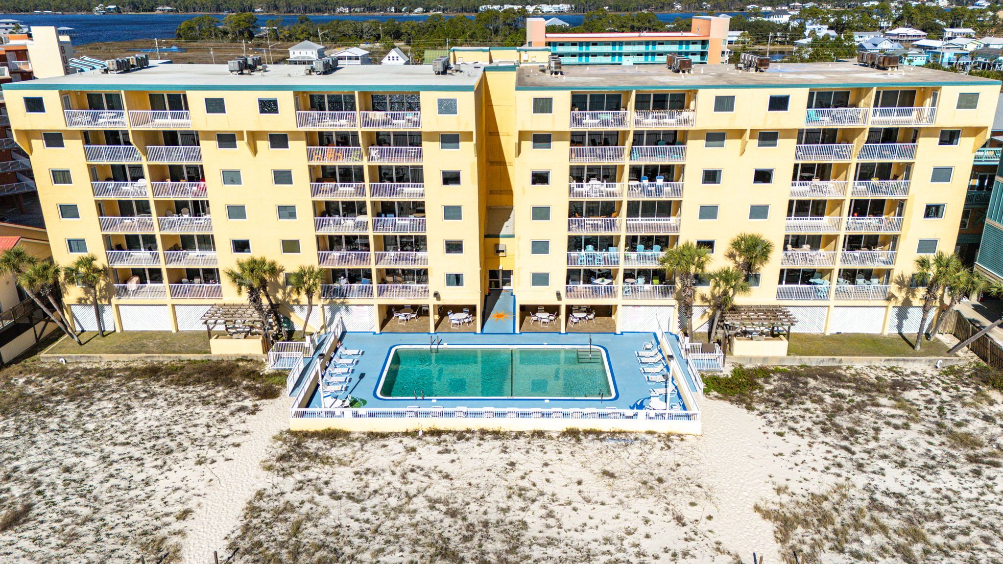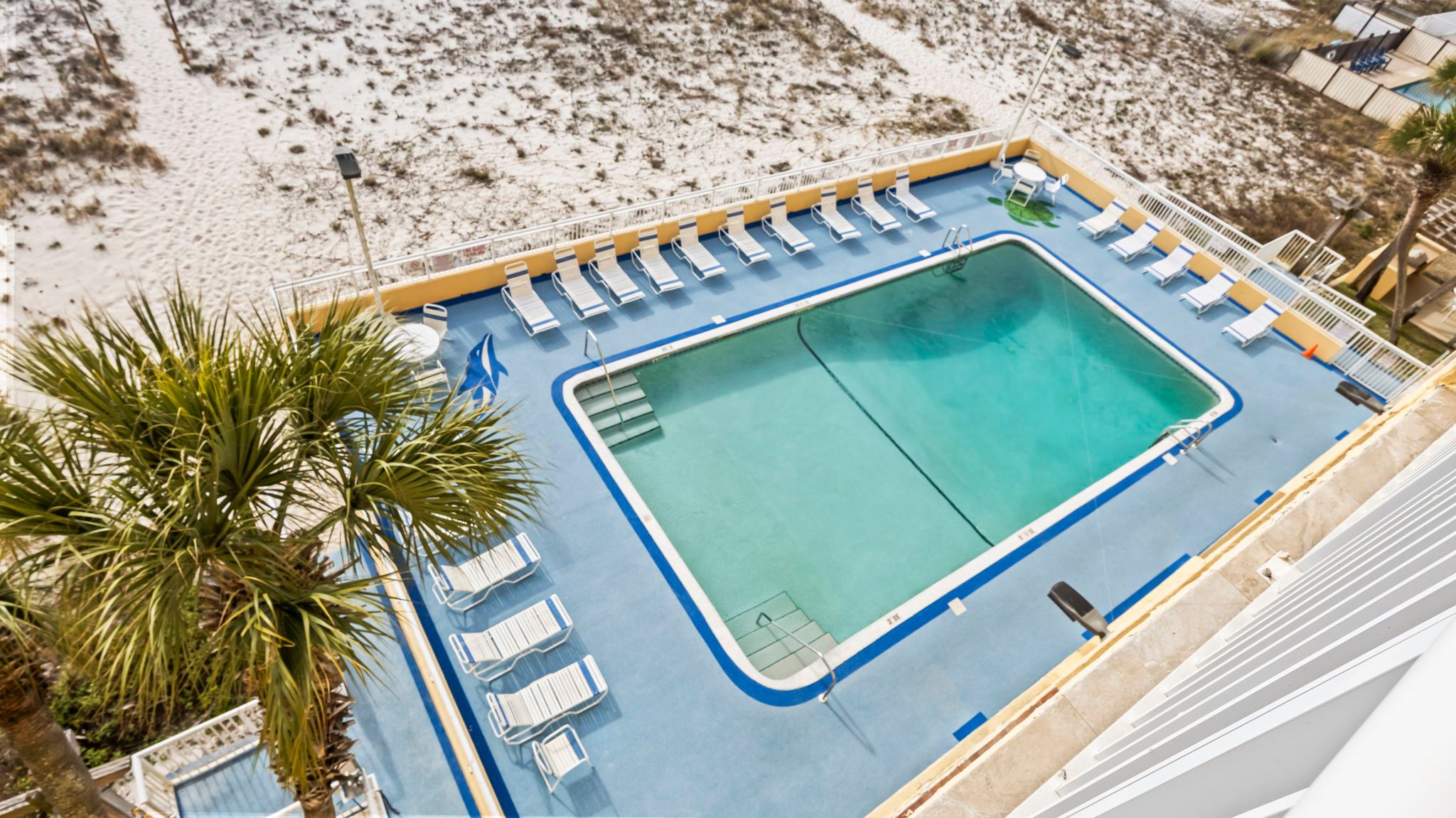 Driftwood Towers Aerial view of Driftwood Towers pool area.