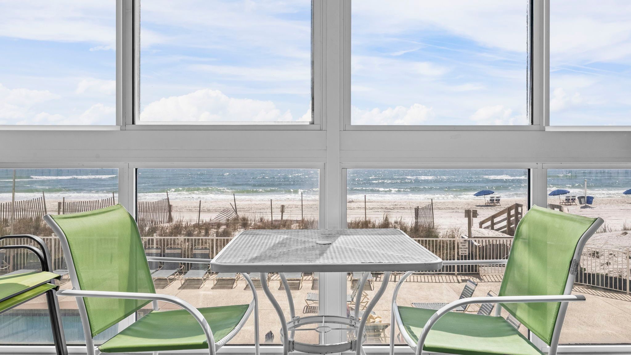 This building sits directly on the sand, so the shoreline is just steps away. A private boardwalk leads straight to the beach, making it easy to move between the pool and the Gulf throughout the day.