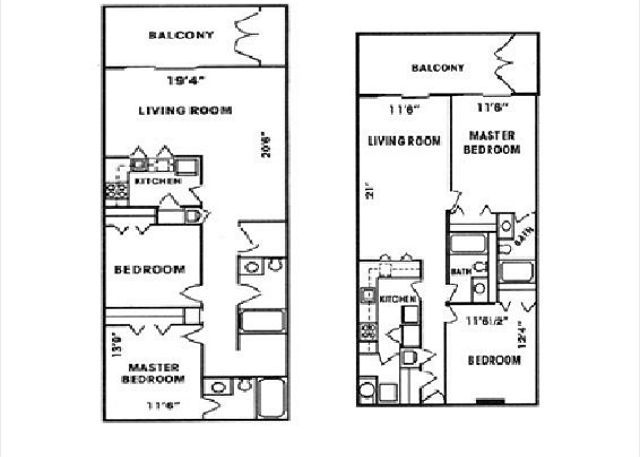Gulf Tower Floor Plans: Left is all A's and D's - larger living room area.