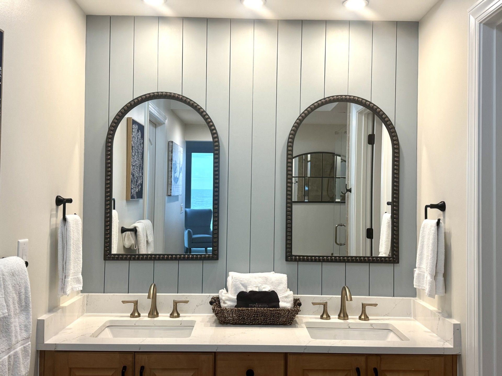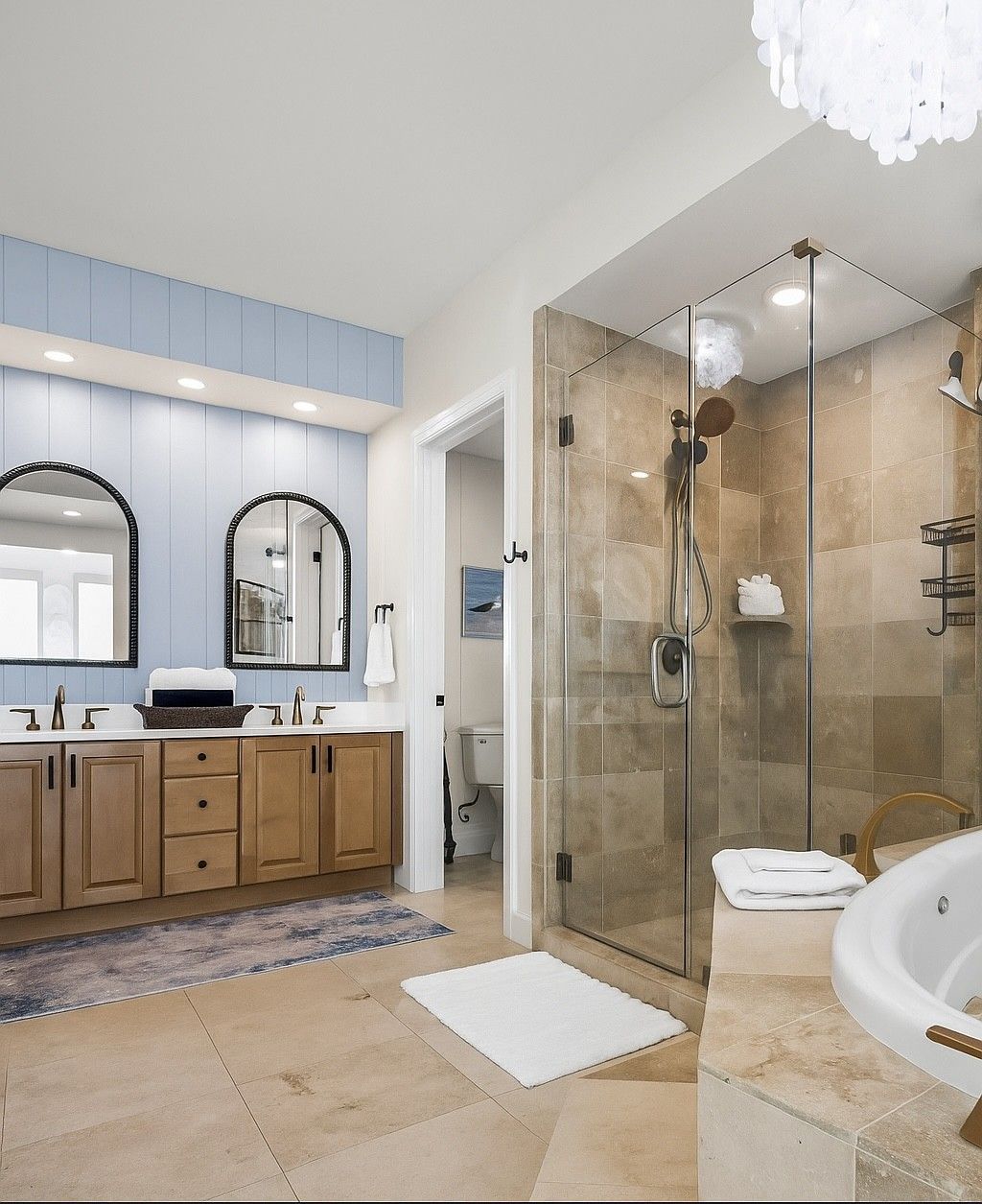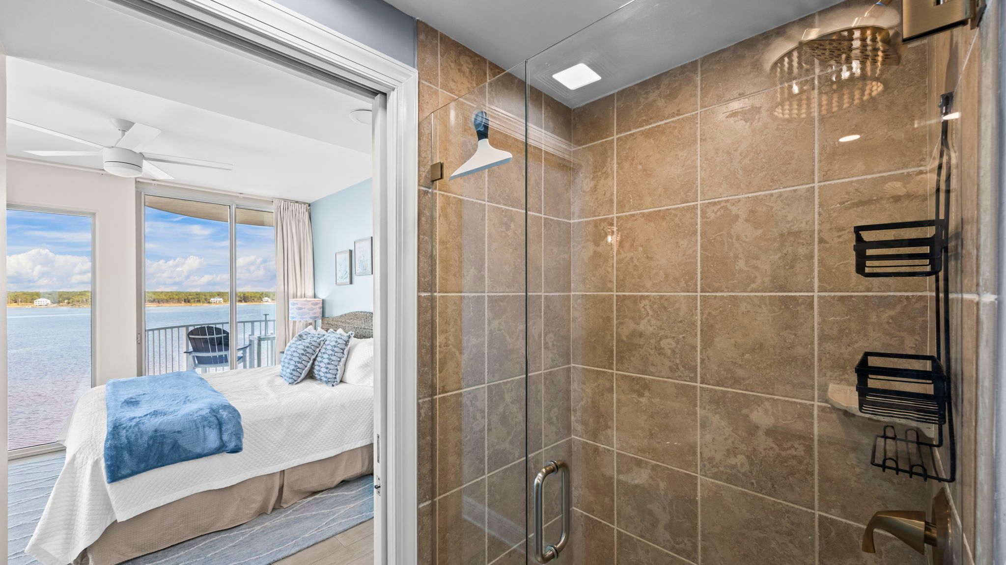 Mustique 801 Primary Bathroom featuring a jetted tub and walk-in shower for a relaxing, spa-like experience.