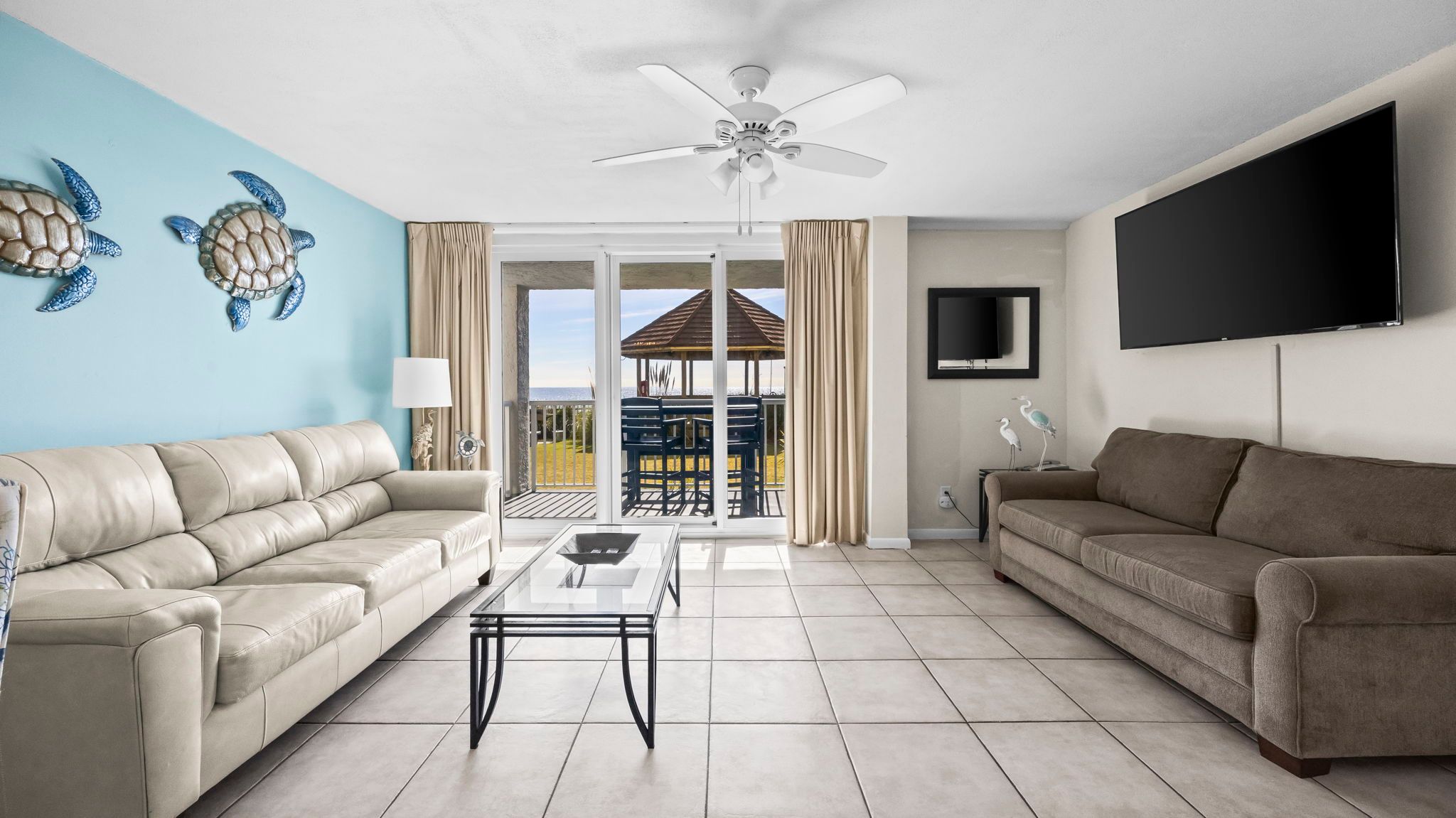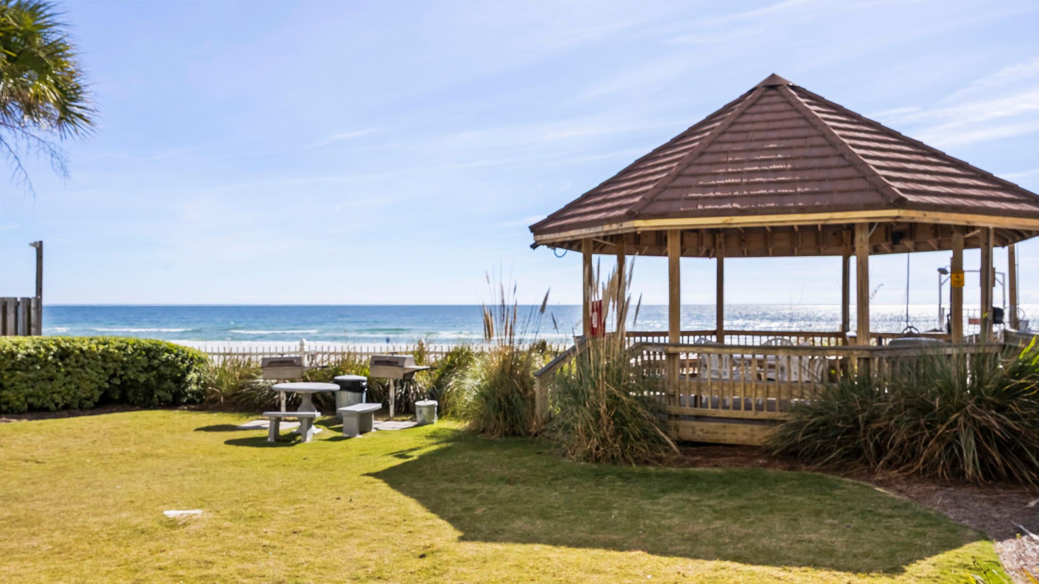 Beyond the condo, there's so much to explore. Walk down the private boardwalk for a beach day filled with swimming, shell hunting, and sunbathing. Cool off in the lagoon-style pool or lounge on the sun deck. Fire up the grill in the BBQ area and enjoy an outdoor meal under the gazebo. Gulf State Park is right across the street, offering scenic trails, fishing, and outdoor activities. You're also just minutes from waterfront dining, live music, shopping, and entertainment. Take a dolphin cruise, rent a kayak, or visit The Wharf for an evening of fun.