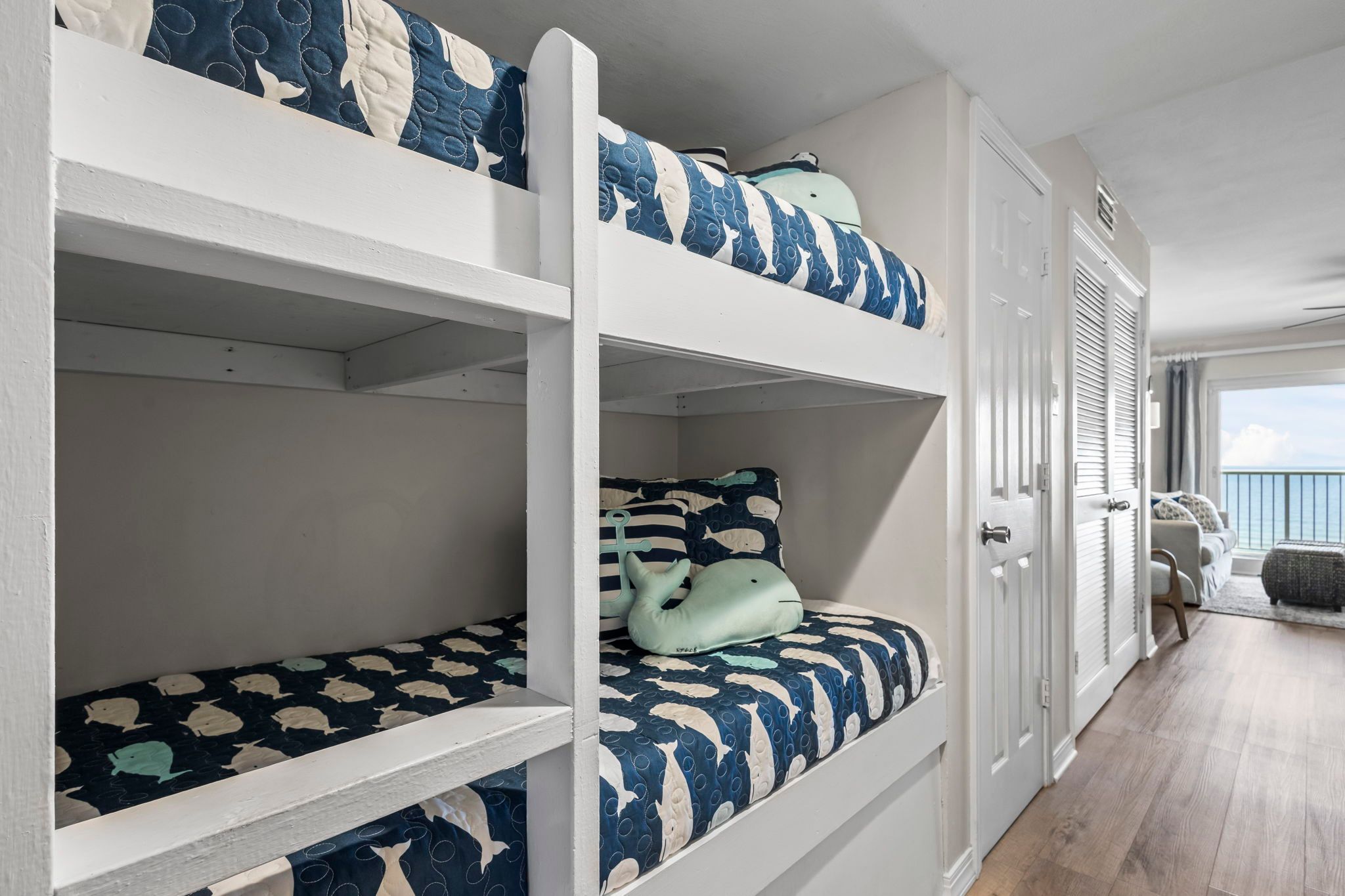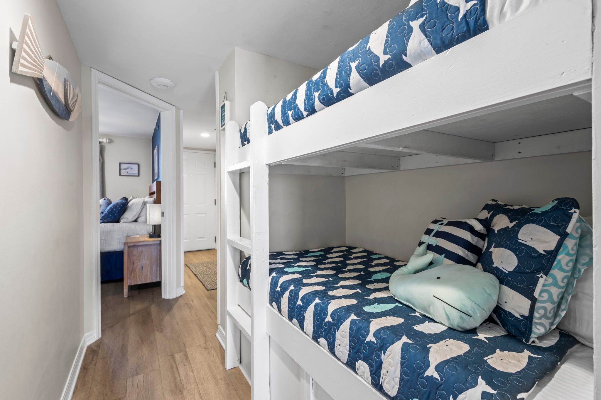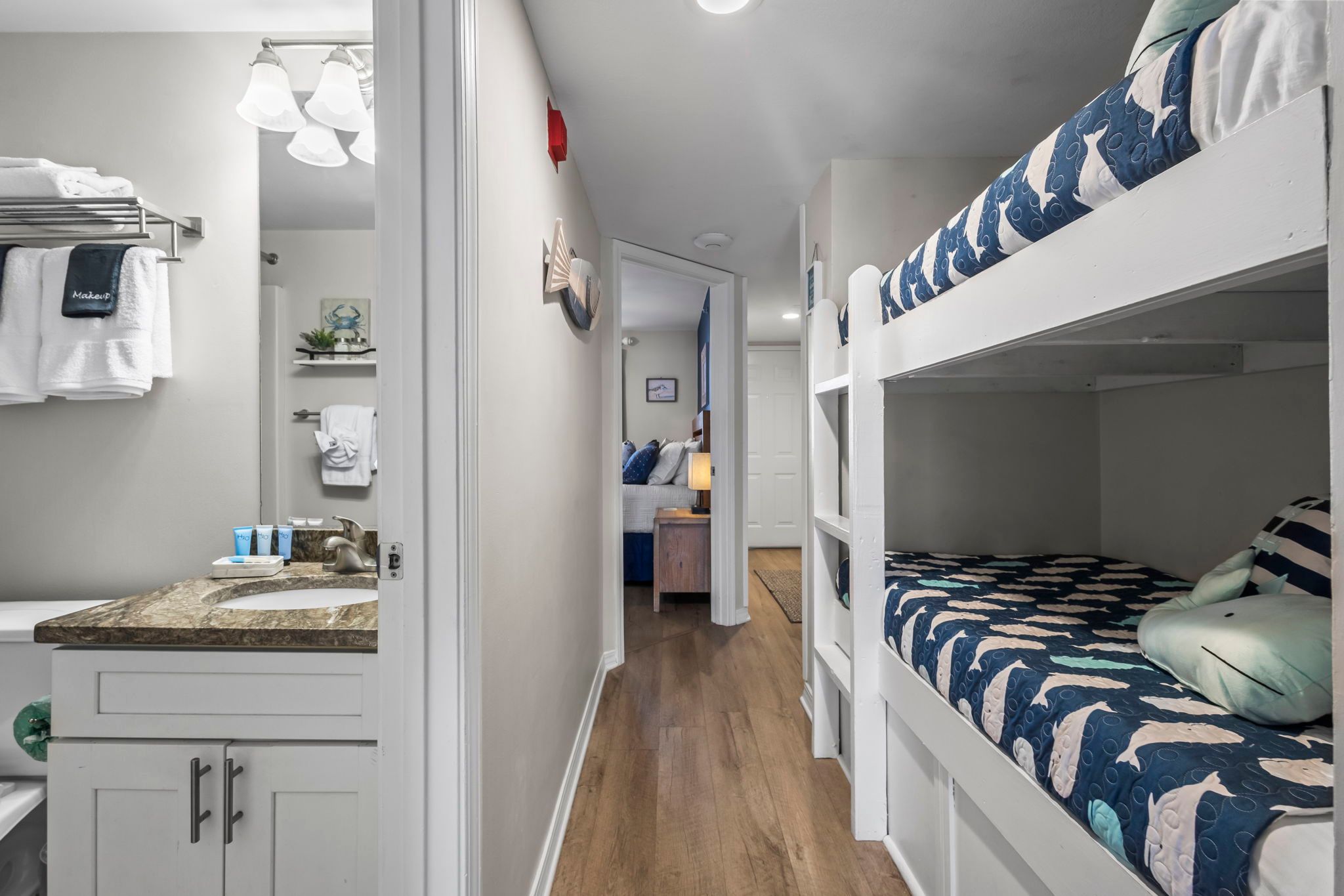 Hallway bunks: Twin-over-twin bed with shared bathroom.