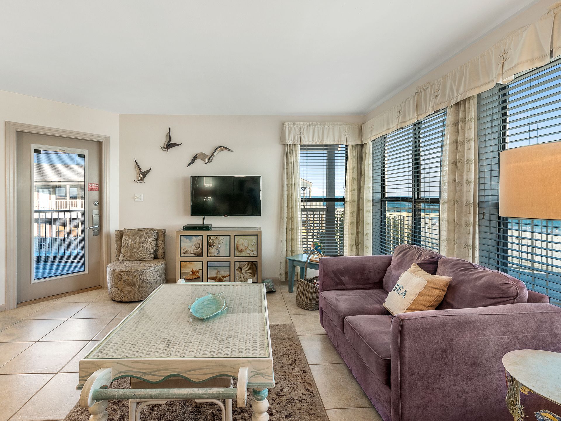 Sandpiper is a low density three story complex. Enjoy watching the waves roll in as you sit on this direct beachfront balcony. This unique V shape building and shared common area walkway in front of each condo lends to a friendly get to know your neighbor atmosphere. Family reunions, large groups of people traveling together and individual families choose this property often. The tropical courtyard, seasonally-heated swimming pool (mid-March through October, as needed) and grilling areas give Sandpiper an ambiance all its own. It is a highly requested property and has the most repeat guests.