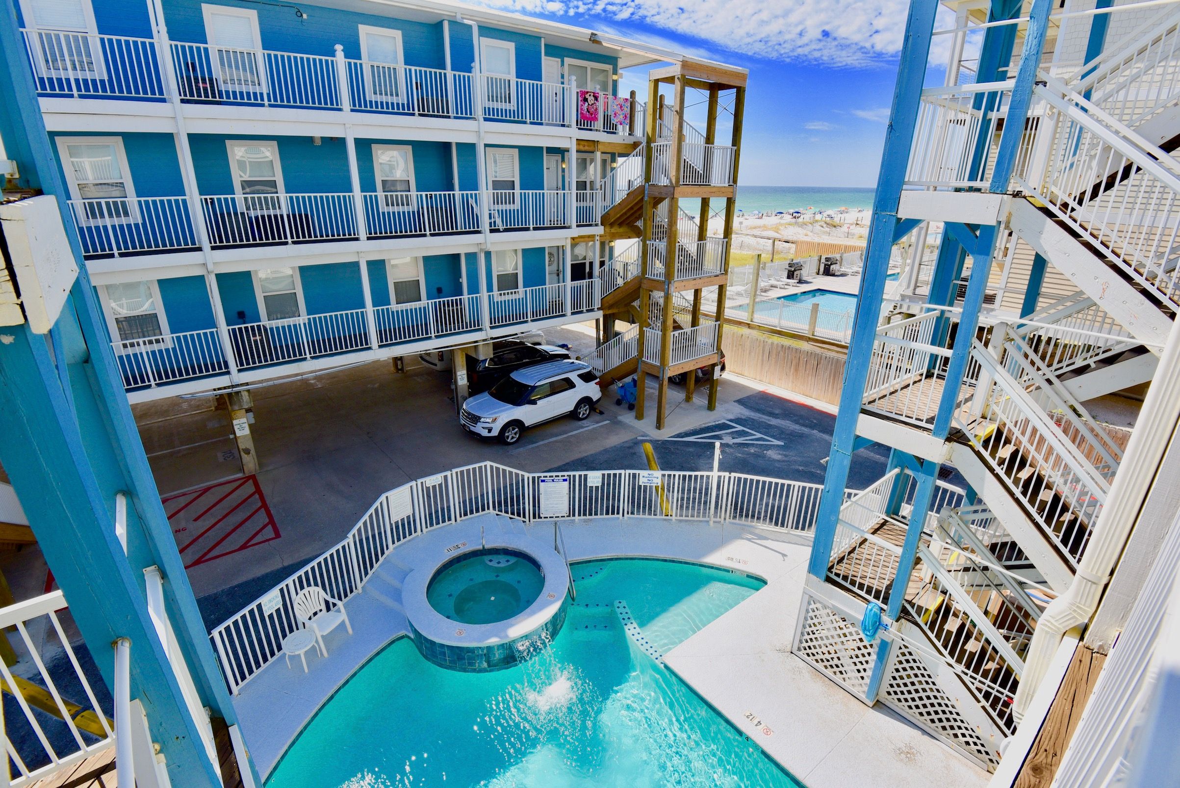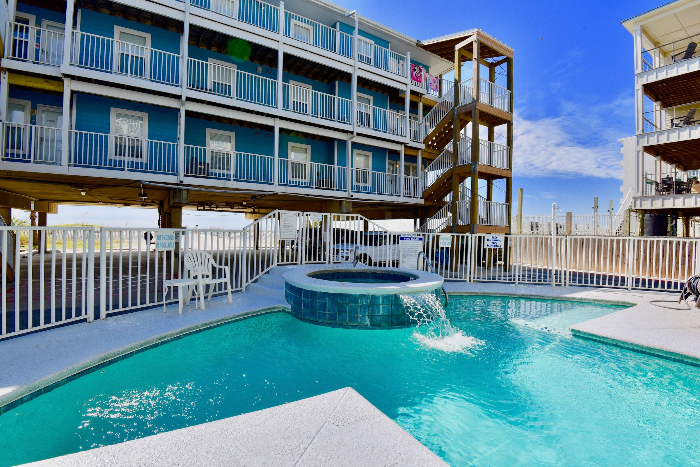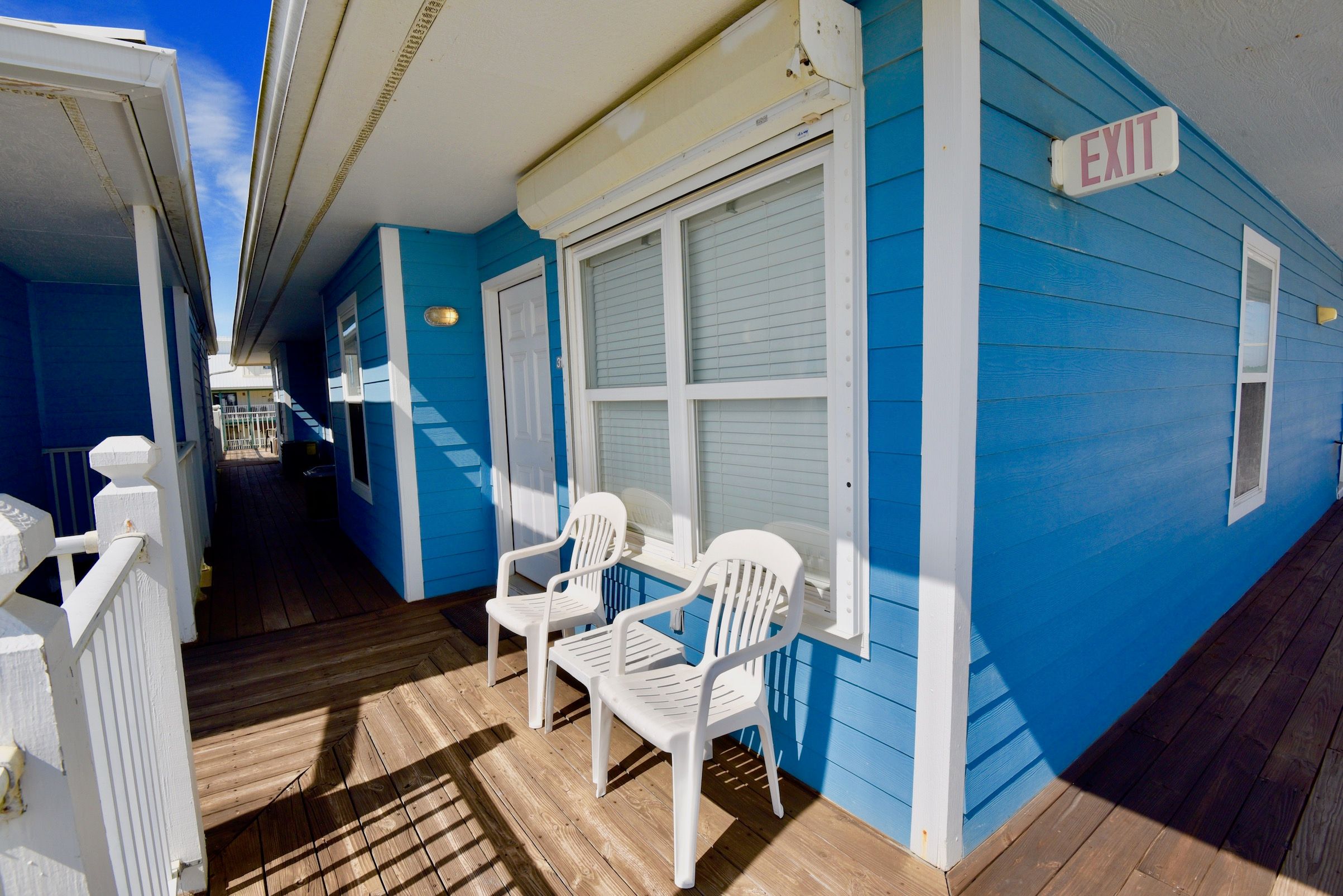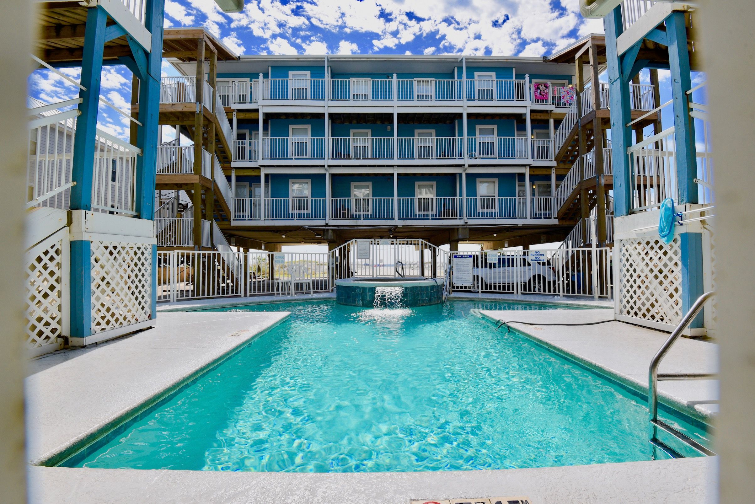 If you are looking for that economical stay, you have found the right one. This walk-up condo is located on the beach. The common area walkway has seating outside your front door. Take advantage of the side view of the Gulf or walk downstairs to relax and enjoy the beach. The outdoor swimming area and adjacent spa tub is quite nice. You will be near area restaurants, shopping and entertainment areas.