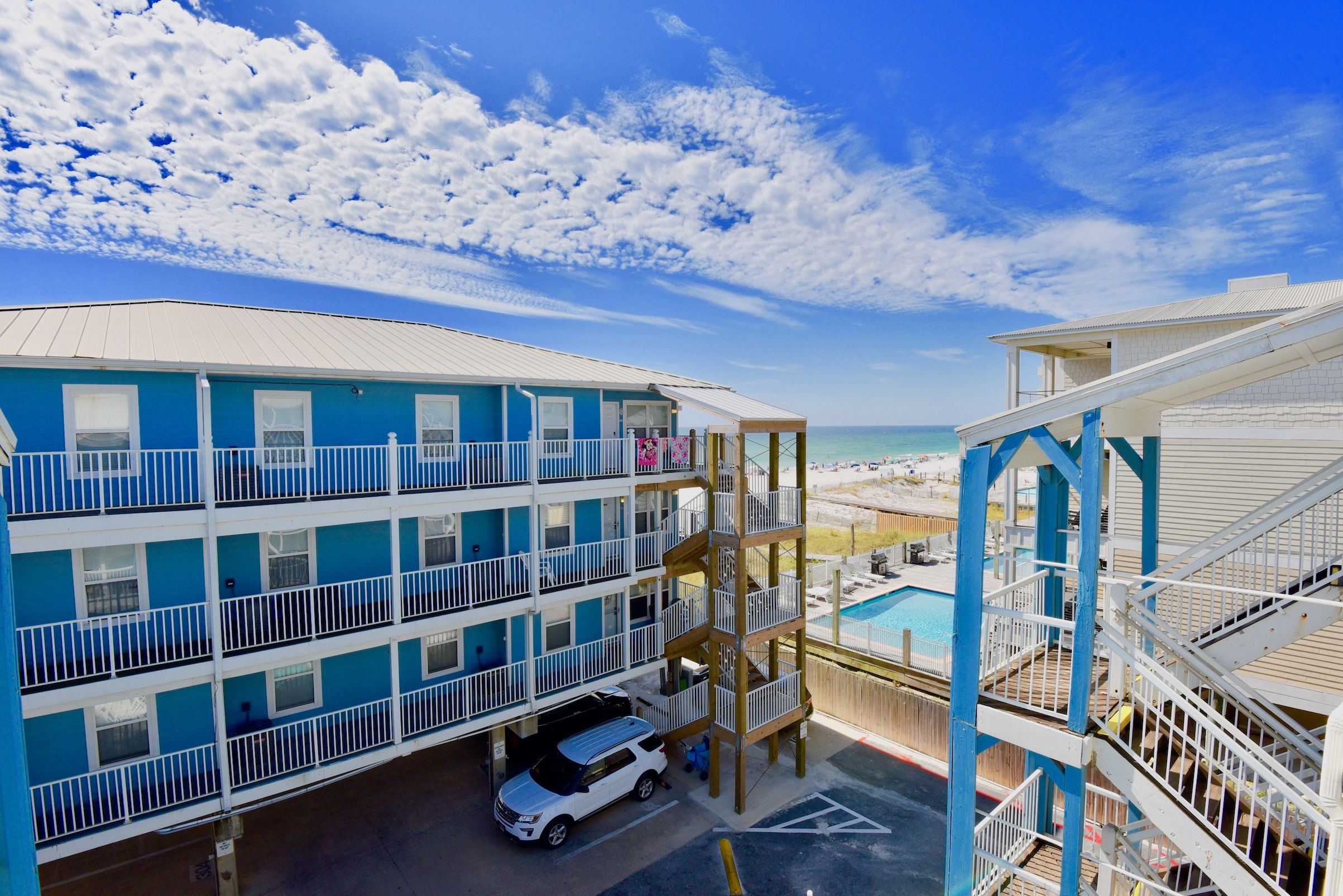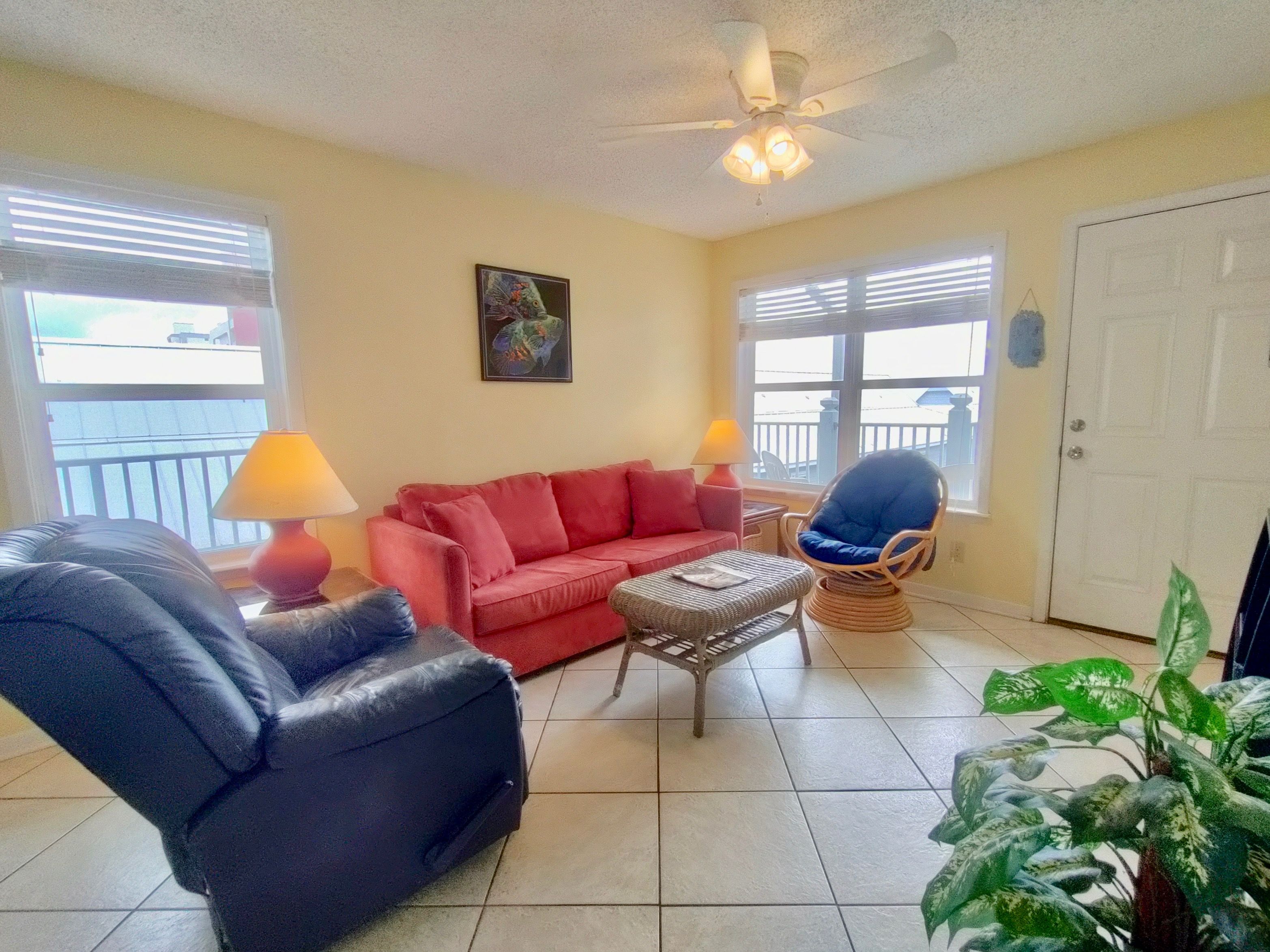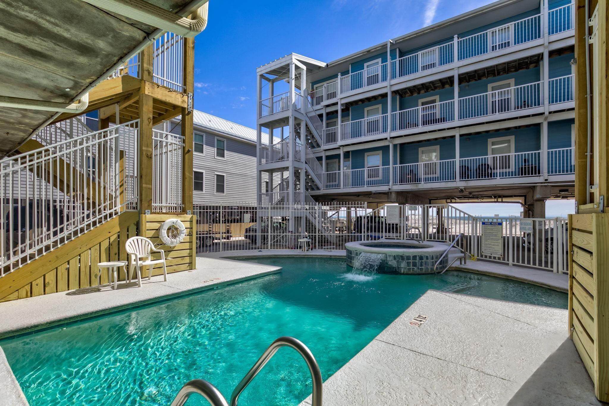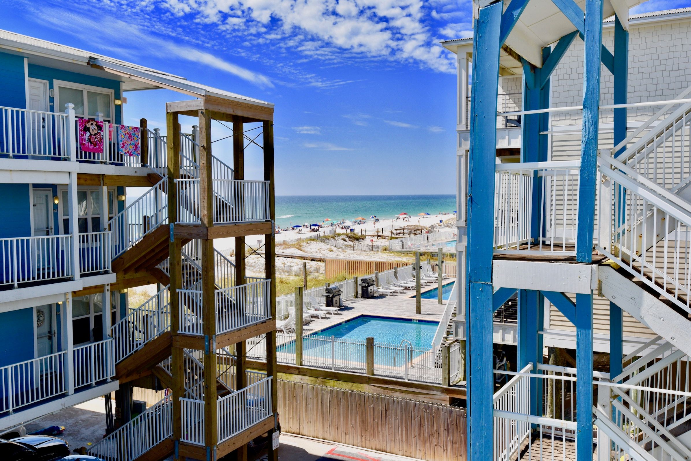 If you are looking for that economical stay, you have found the right one. This walk-up condo is located on the beach. The common area walkway has seating outside your front door. Take advantage of the side view of the Gulf or walk downstairs to relax and enjoy the beach. The outdoor swimming area and adjacent spa tub is quite nice. You will be near area restaurants, shopping and entertainment areas.