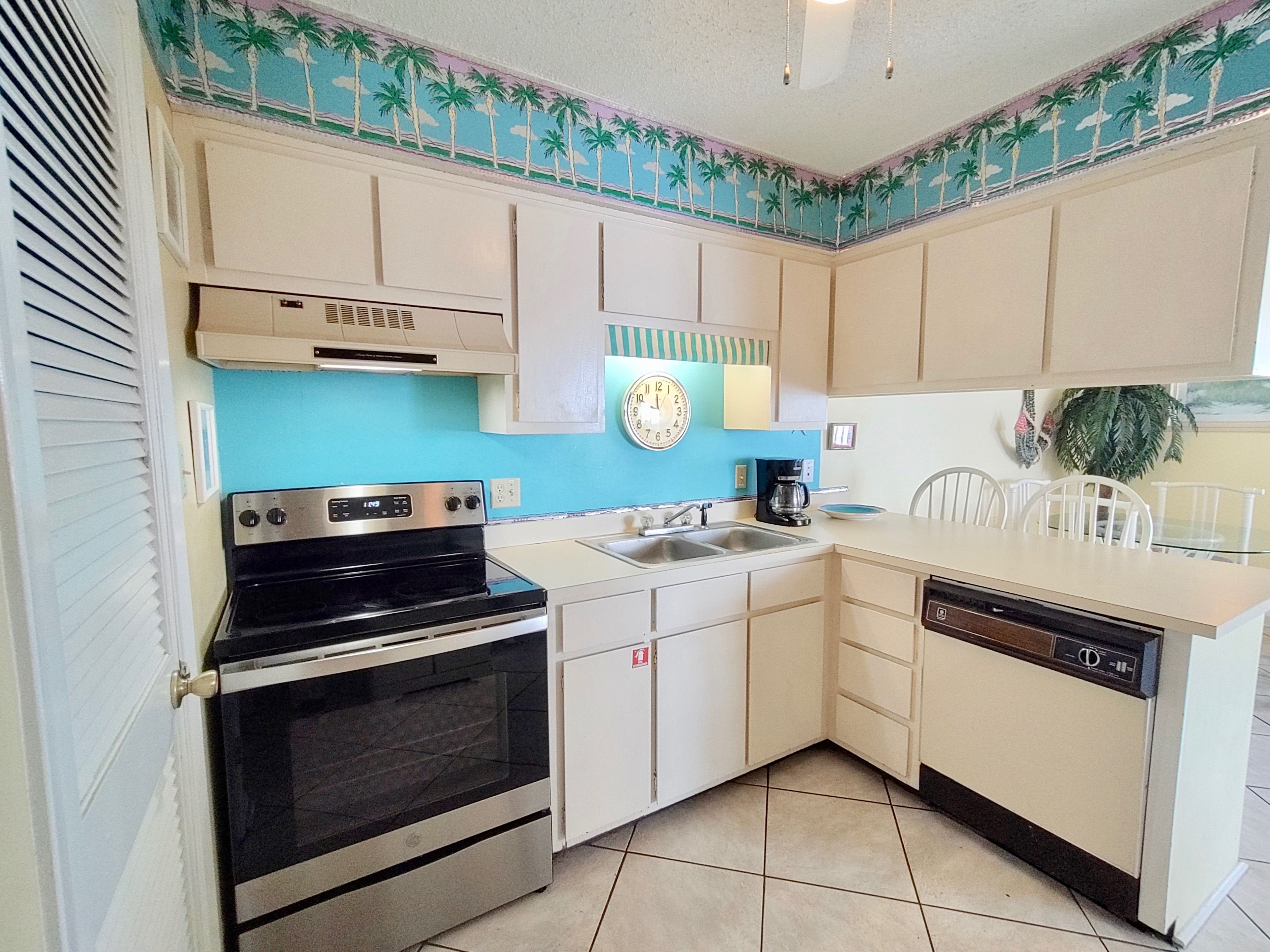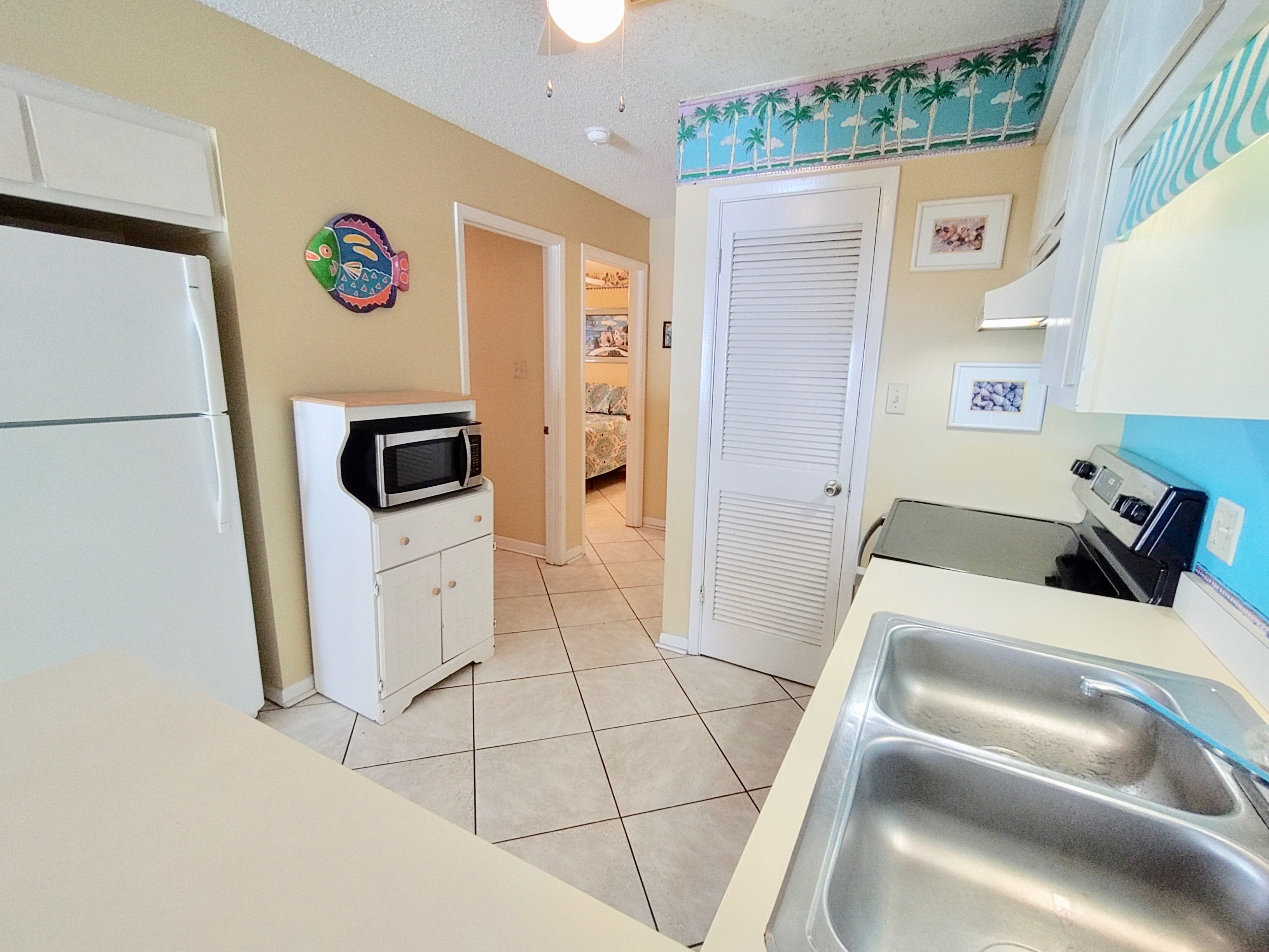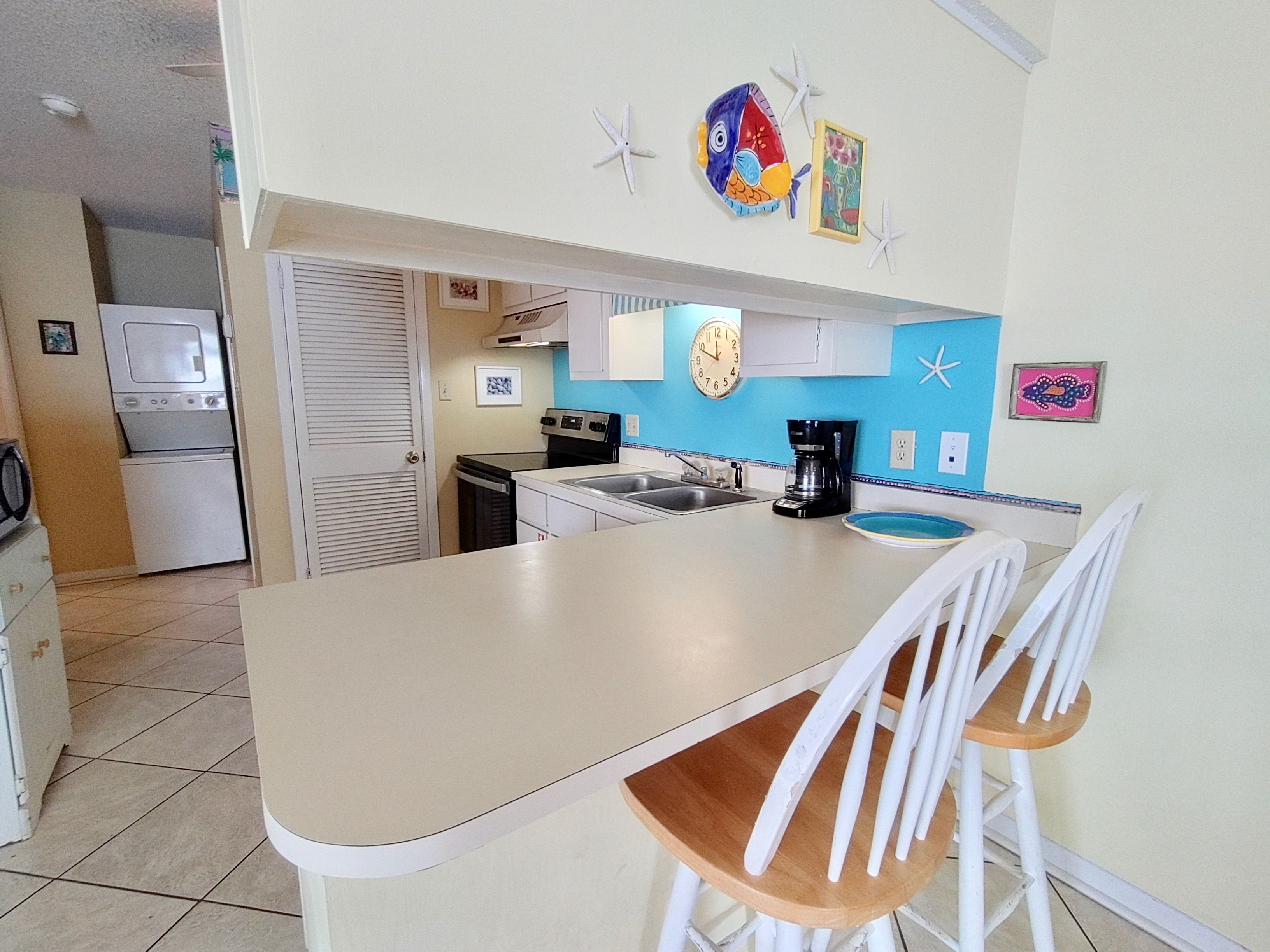 Basic furnishings in this condo include a queen-sized bed in the master and two twins in the guest bedroom. A fully-equipped kitchen and washer and dryer enable you to attend to your family's vacation needs while still saving money!