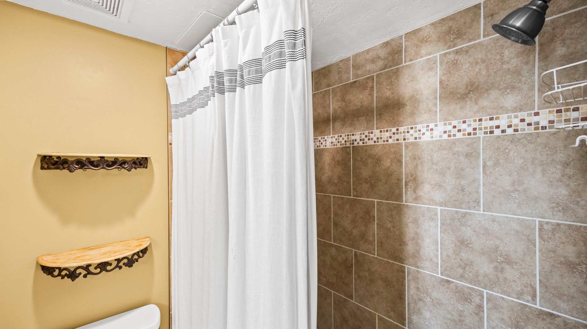 Surf Side Shores 1806 Primary bathroom with shower/tub combination.